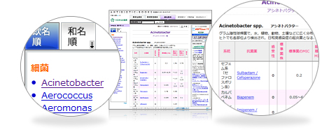 また、約92属230種の細菌・真菌の情報も掲載しており、菌別に薬剤の感受性を確認いただけます。